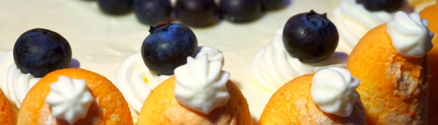 Dekorować w dowolny sposób owocami oraz pozostałą bitą śmietaną za pomocą szprycy cukierniczej.