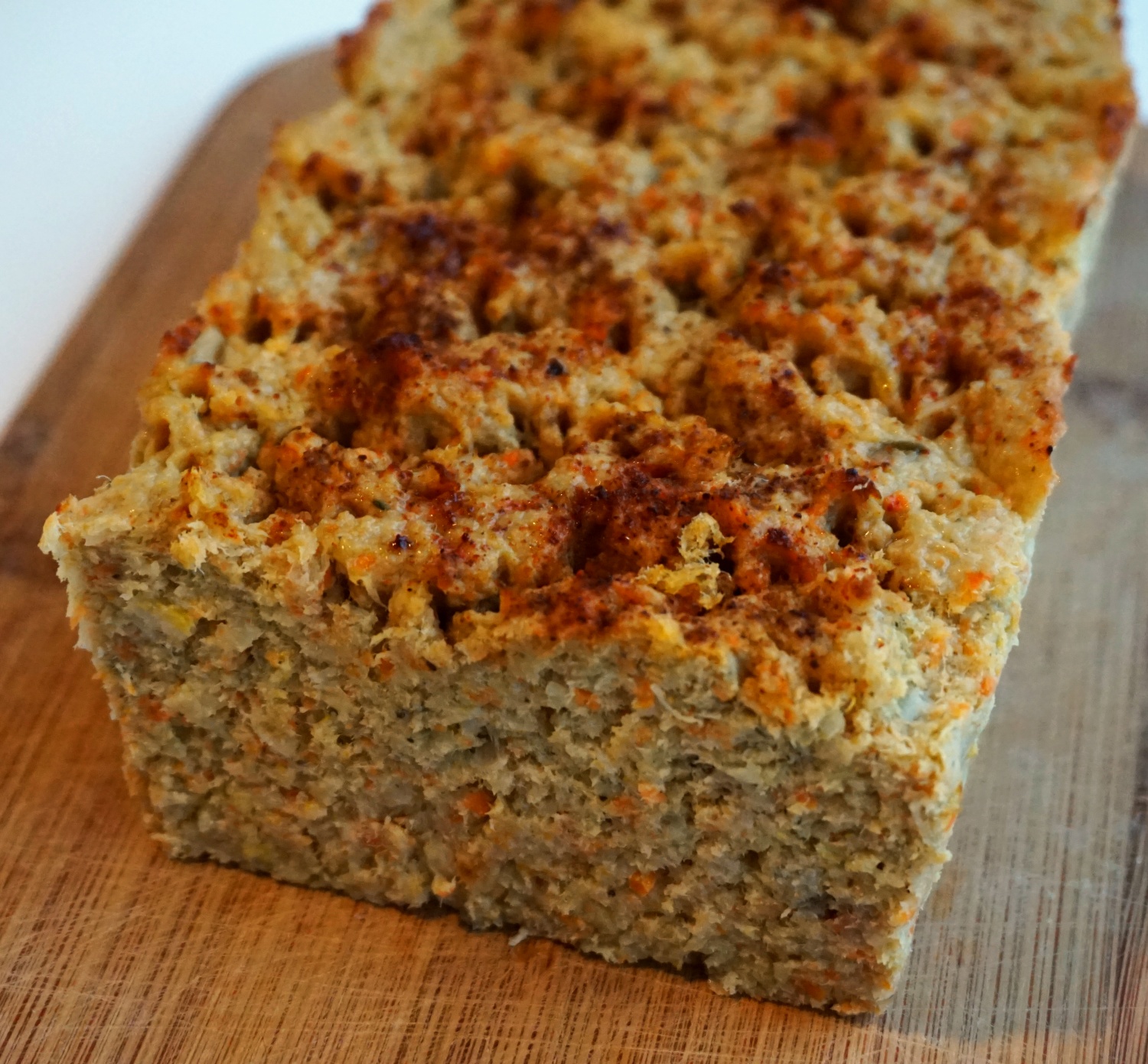 Do zmielonych warzyw dodać 1 jajko oraz przeciśnięty przez praskę ząbek czosnku i dobrze wymieszać. W celu zagęszczenia lub rozrzedzenia masy można dodać oleju do smażenia lub tartej bułki. Jeżeli konsystencja pasztetu nas zadowala, pozostaje doprawić solą morską i pieprzem według uznania. Na wierzchu posypać słodką czerwoną papryką.