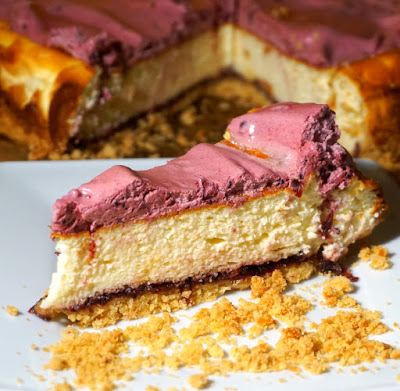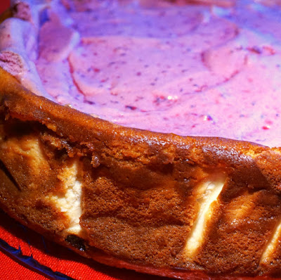 - faza 3: 15 minut w 150 st. C grzałka z dołu (wcześniej wyciągnąć sernik z piekarnika i rozsmarować piankę porzeczkową na powierzchni ciasta)