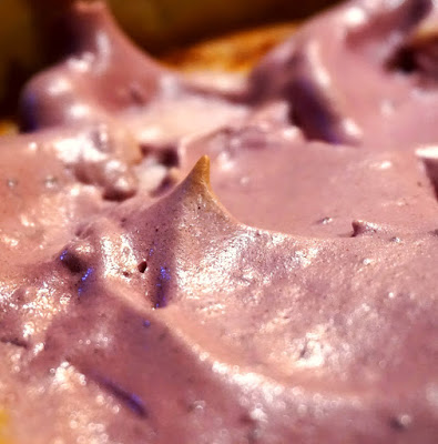 Dwa białka, które pozostały po kruchym cieście ubić z 1 łyżeczką cukru i 4 łyżkami dżemu z czarnych porzeczek. Piankę wstawić do lodówki.