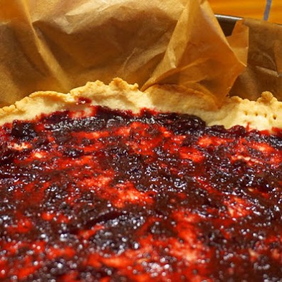 Upieczony spód schłodzić przez 10 minut, po czym wysmarować 3 łyżkami dżemu z czarnej porzeczki.