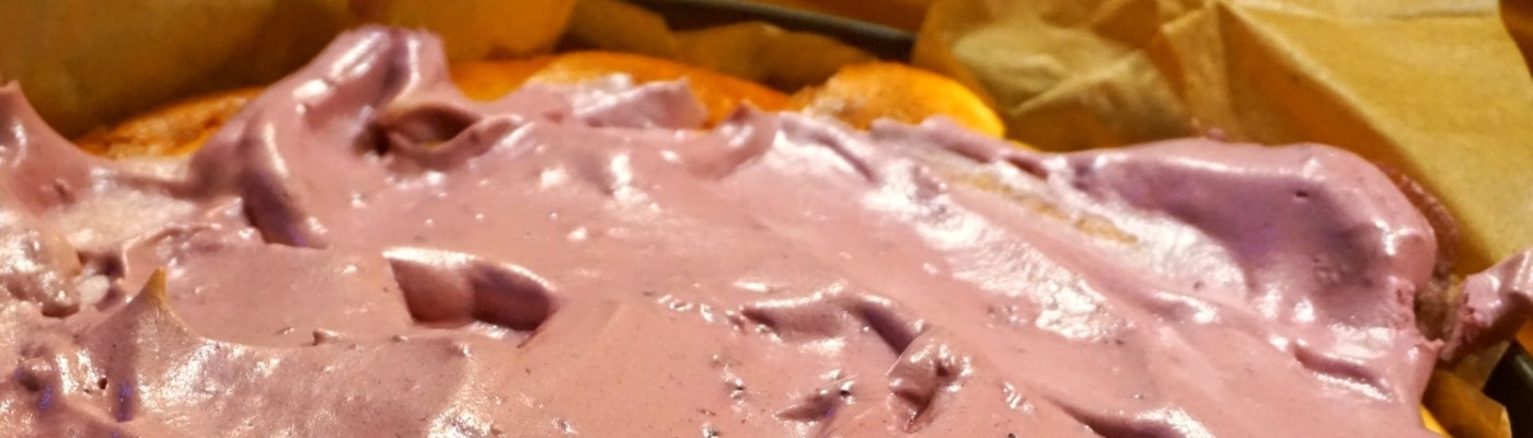 Dwa białka, które pozostały po kruchym cieście ubić z 1 łyżeczką cukru i 4 łyżkami dżemu z czarnych porzeczek. Piankę wstawić do lodówki.
