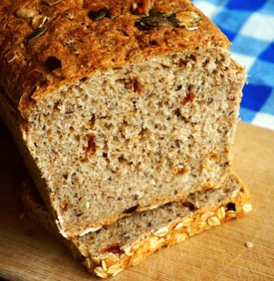 Po 30 minutach chleb wyciągnąć z foremki i włożyć go do wystudzenia na kratkę do wyłączonego piekarnika. Kroić po całkowitym wystygnięciu.