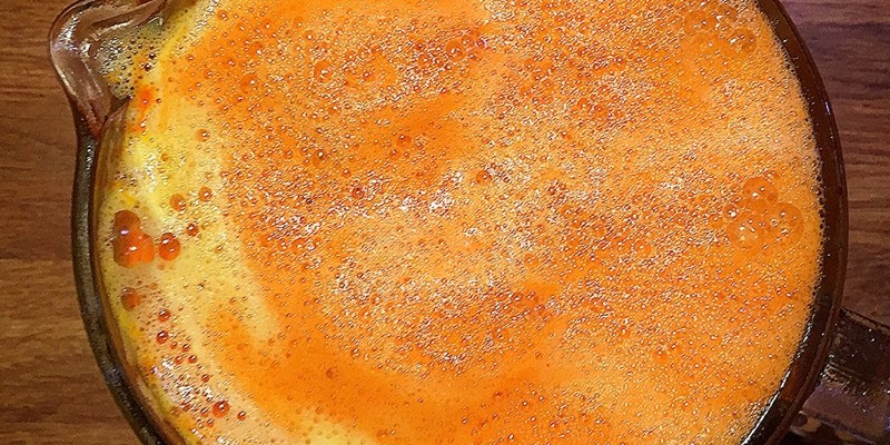 Rozpoczynamy od mandarynek, następnie cytryna i marchew. Nadmiar piany należy po wyciśnięciu zebrać, chyba, że komuś to nie przeszkadza.