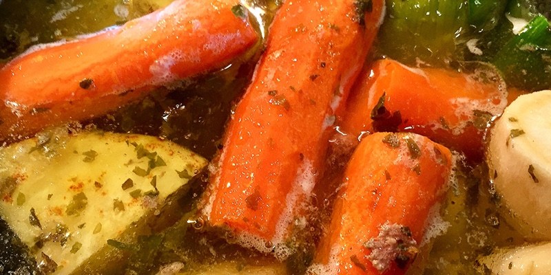 - Po tym czasie dodać, pokrojone w duże kawałki: marchew, pietruszkę, por i seler.