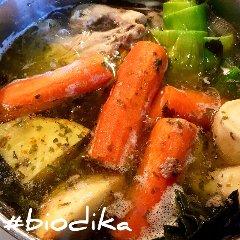 - Po zakończonym gotowaniu wyjąć mięso i warzywa, a rosół odcedzić przez sito.