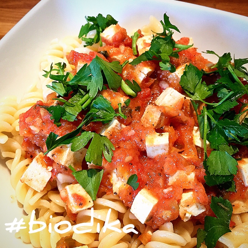 - Dodać pokrojone na małe kawałki pomidory.