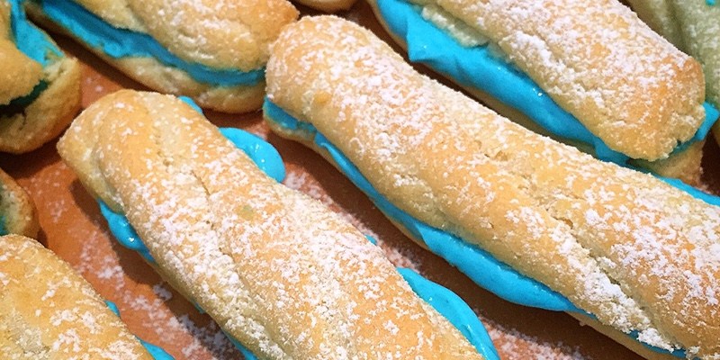 Za pomocą szprycy lub maszynki z odpowiednią końcówką uformować wałeczki ciasta o średnicy 2 cm.