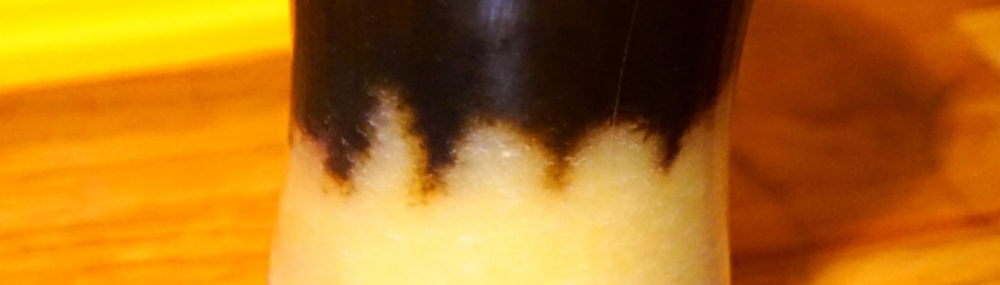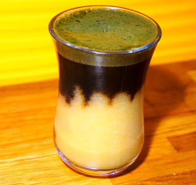 To pierwszy zblendowany przeze mnie sok. Wyciśnięte i zmiksowane jabłka stanowią tutaj nośnik dla soku z czerwonego jarmużu. Posiada on ciekawą czarną-zieloną barwę z soczyście zieloną pianą. Czerwony jarmuż w smaku przypomina warzywa z rodziny kapustnych, a w połączeniu z jabłkami jest praktycznie niewyczuwalny.
