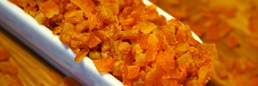 3 dojrzałe pomarańcze10 łyżeczek cukru trzcinowego Składniki pozwalają na przygotowanie ok. 80-90 g suszonej skórki pomarańczowej Przygotowanie: Pomarańcze sparzyć wrzątkiem i dobrze wyszorować z zastosowaniem płynu do mycia naczyń. Oddzielić skórkę i wyciąć jak najwięcej białej warstwy albedo, która odpowiada za gorzki smak suszonej skórki. Pokroić na paski o szerokości 1 cm, ponieważ ułatwi… Czytaj dalej Dietetyczna skórka pomarańczowa